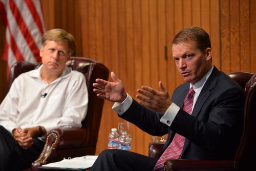 FBI Director James B. Comey (right) testifies before the U.S. Senate Judiciary Committee about the national security risks of end-to-end encryption, with Deputy Attorney General Sally Quillian Yates (left) at his side, as CISAC senior research scholar Herb Lin looks on from the gallery.